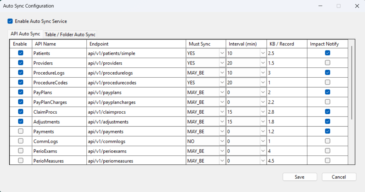 The purpose of this configuration screen is to allow to control which APIs should sync and how frequently they should run.