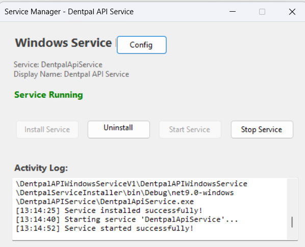 This screen should be developed using Windows Forms and integrated with the existing Windows Service that performs the sync operations.