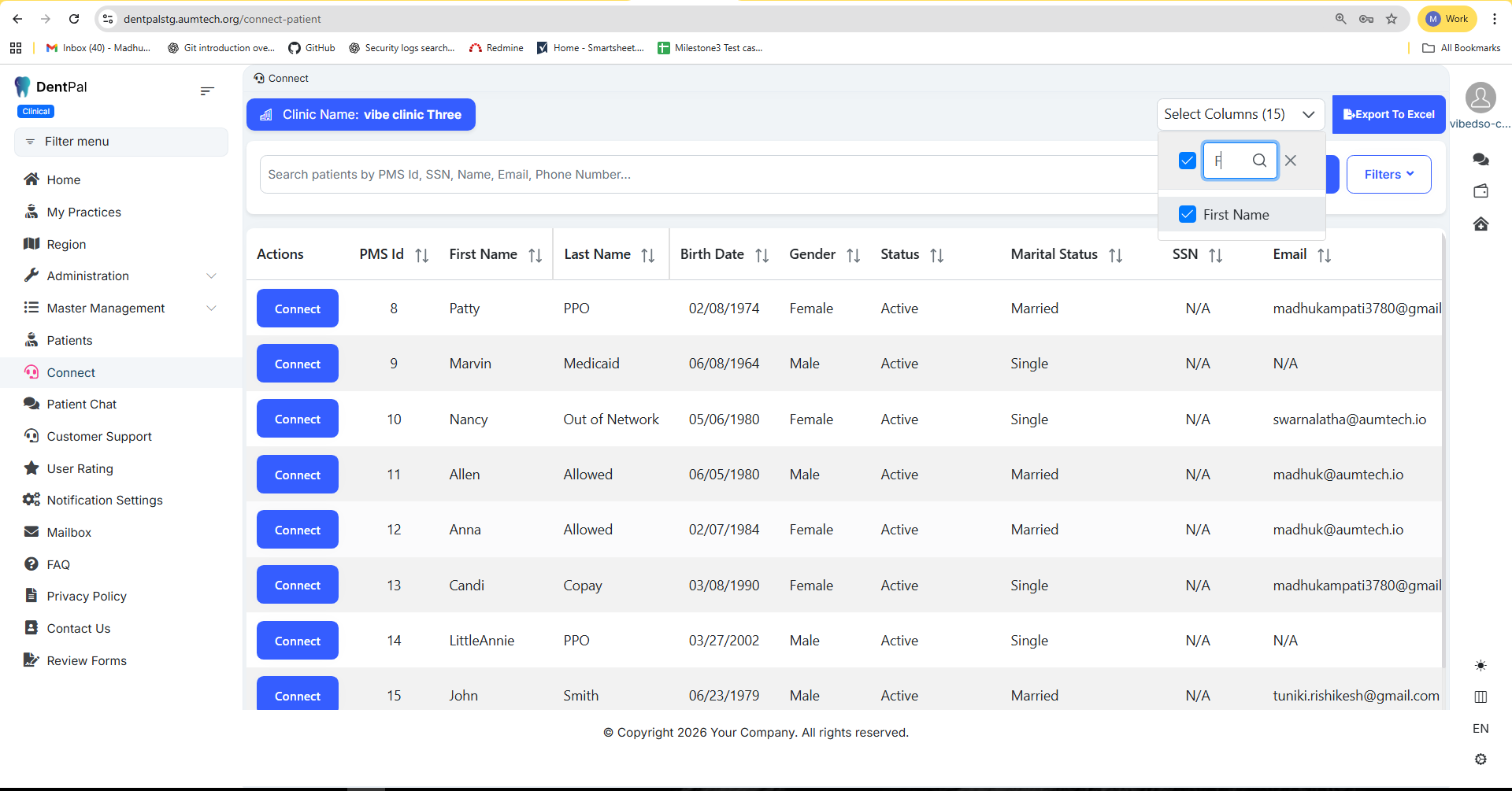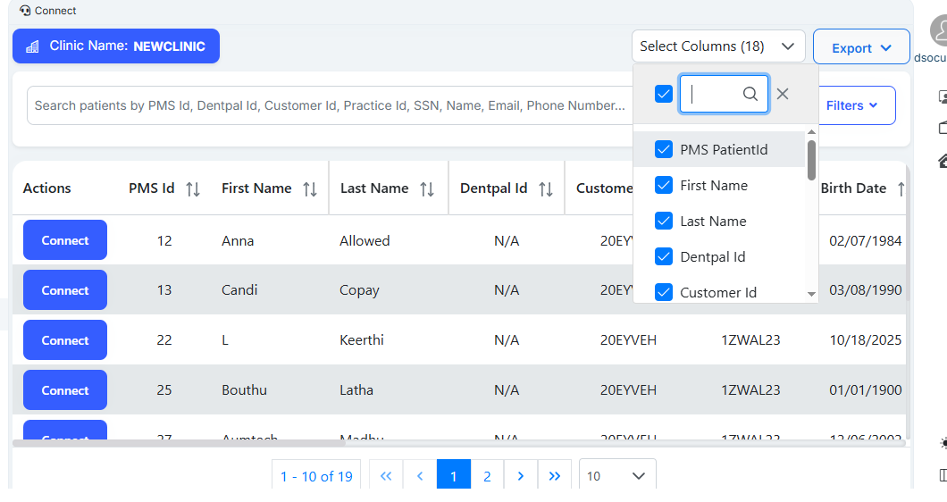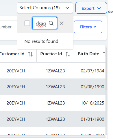 In the Connect module → Go to Select Column → Search for Gender or any other column → Click the Cancel (X) icon → Open Select Column again → It still shows the previous search results instead of displaying all columns.