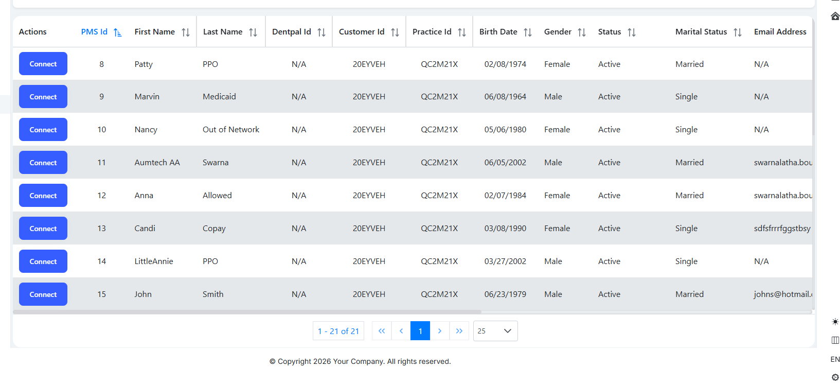 Login as a Company Admin → Go to the Connect module → Try to sort the column headers → The sorting is not showing accurate values.