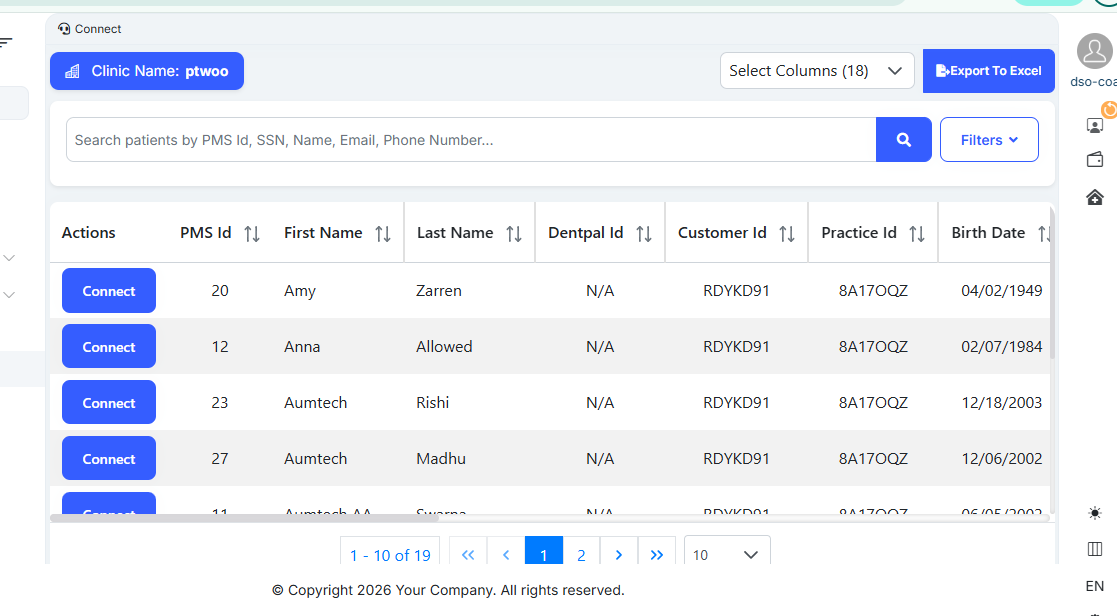 openC1.1>> Incorrect Clinic ID Display and Missing Customer ID in Connect Module