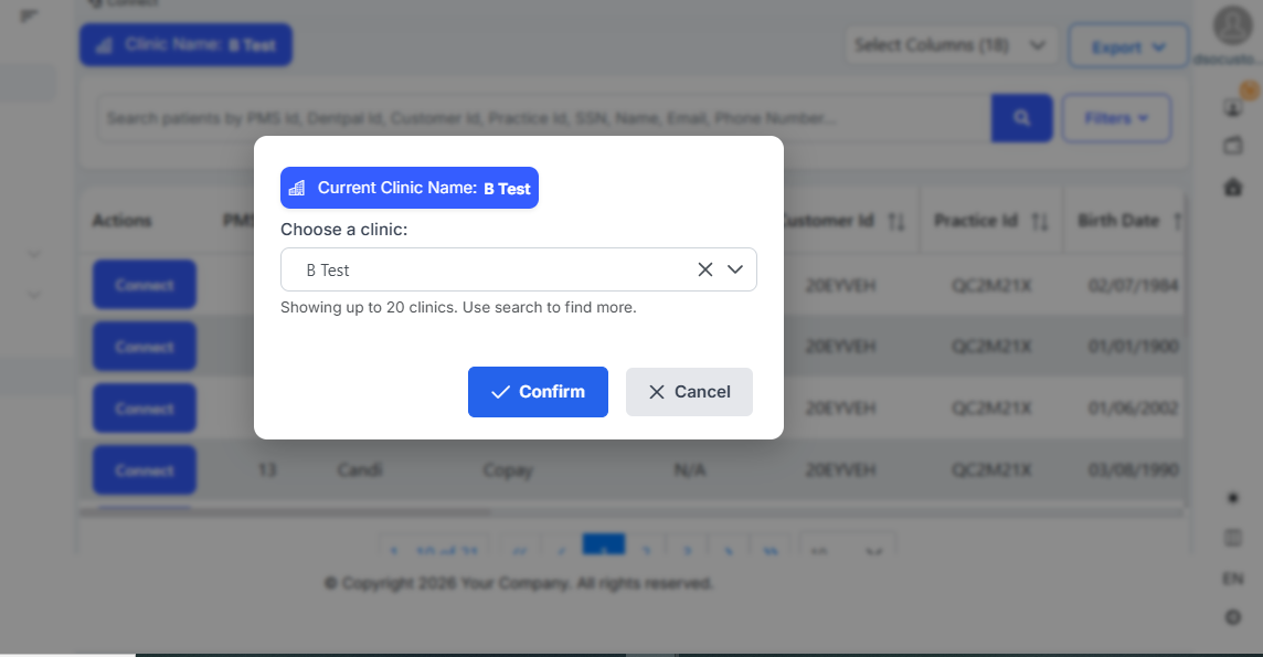 openC1.1> Switch Clinic Option Not Opening After First Successful Switch in Connect Module