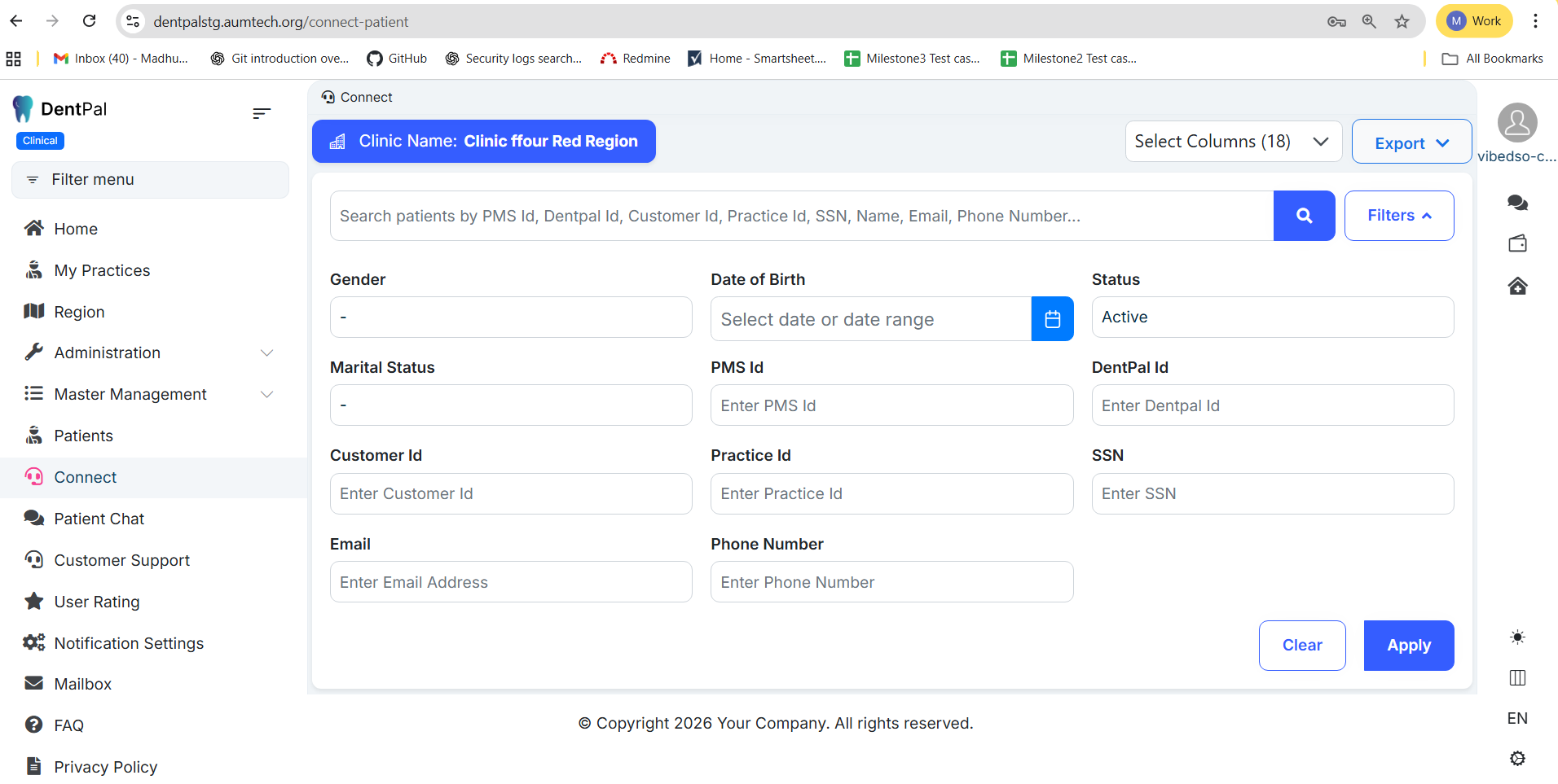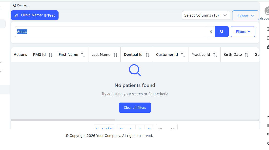 Login as a Company Admin → Go to the Connect module → The Search bar and Filters are not working.