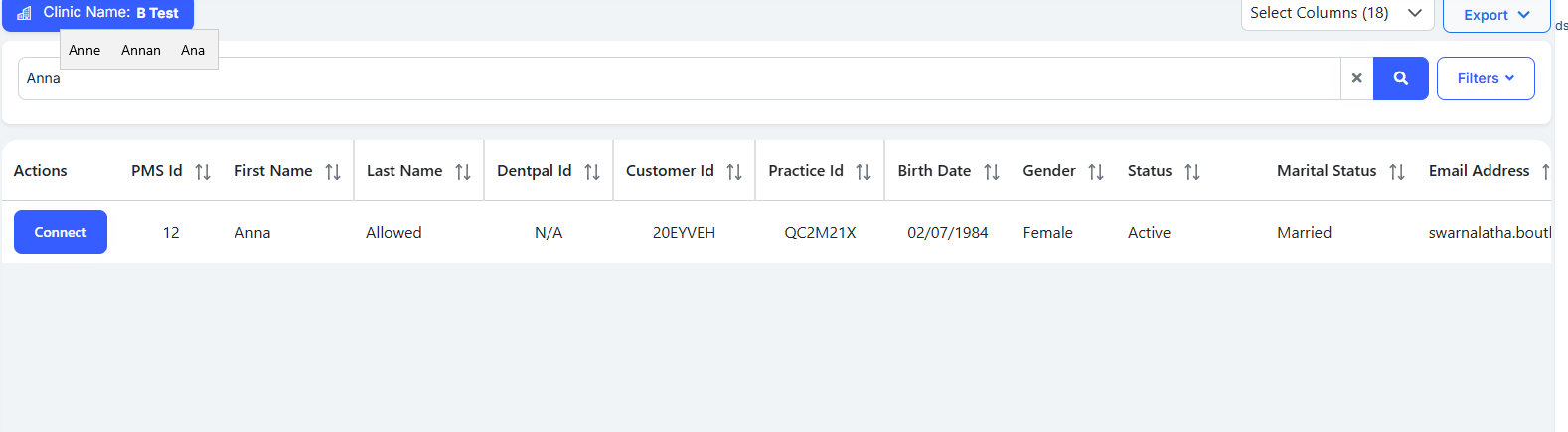 openC1.1 >> Search Bar and Filters Not Working in Connect Module