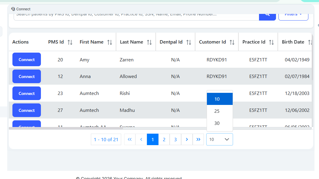 openC1.1 >> Pagination Dropdown Numbers Not Displaying Correctly in Connect Module