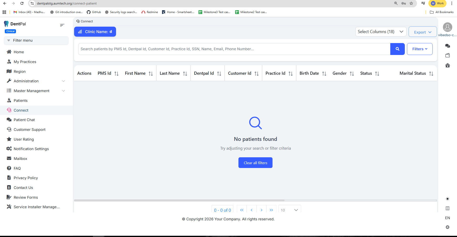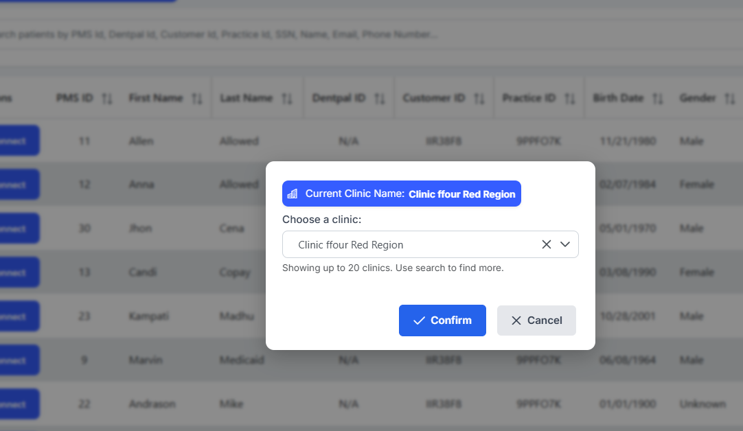 Connect page shows “No patients found”, even though patients exist in the previously selected clinic.