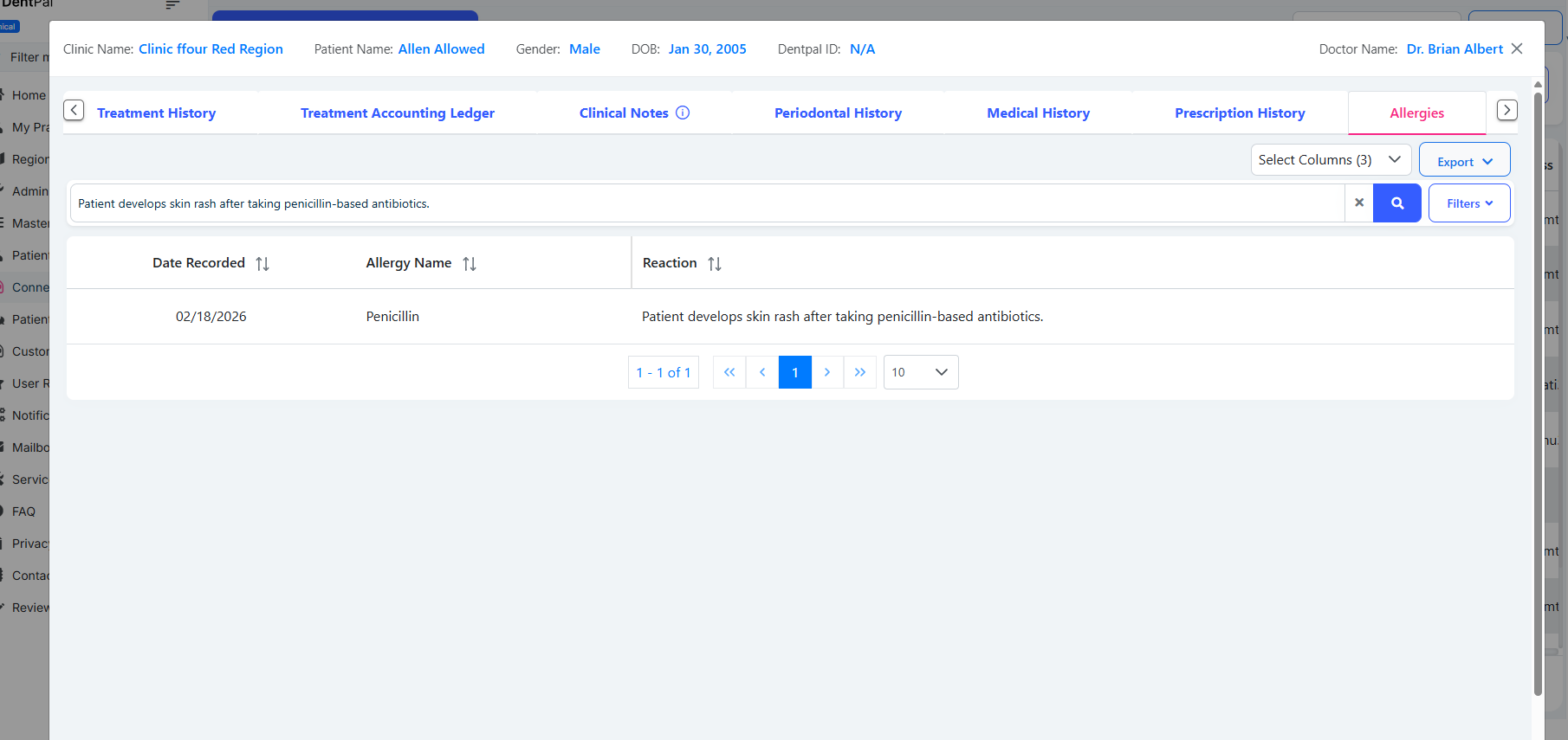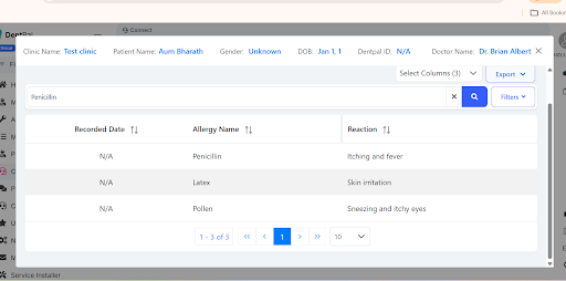 Logged in as Company Admin → Navigate to Connect module → Open Allergies screen.