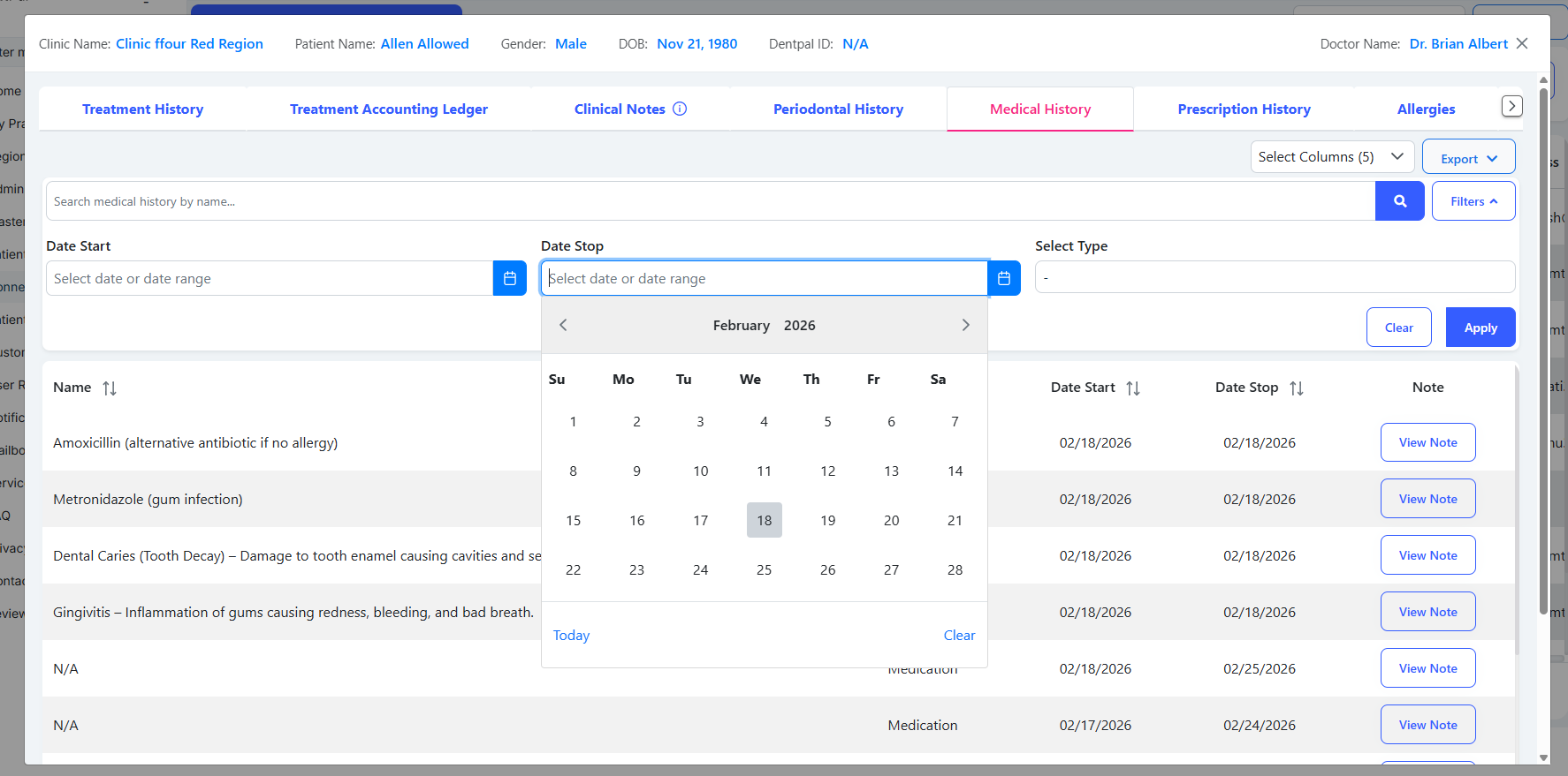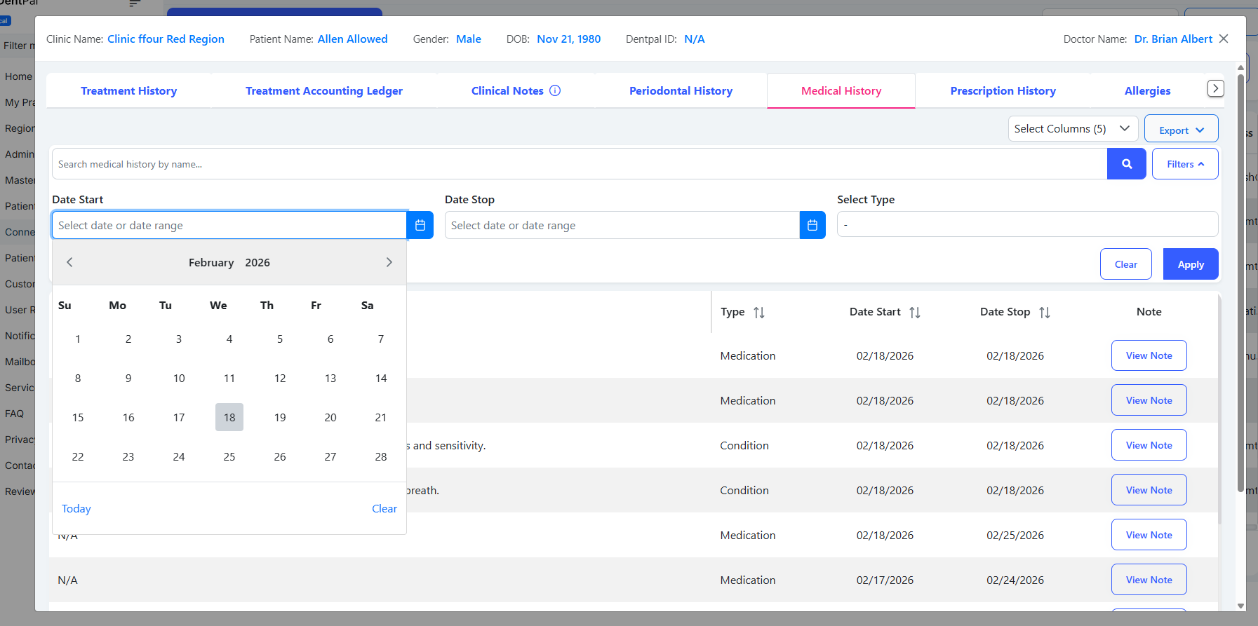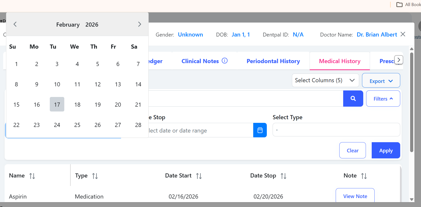 C1.6 >> Add CLEAR button for calender in medical history filter