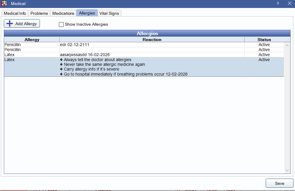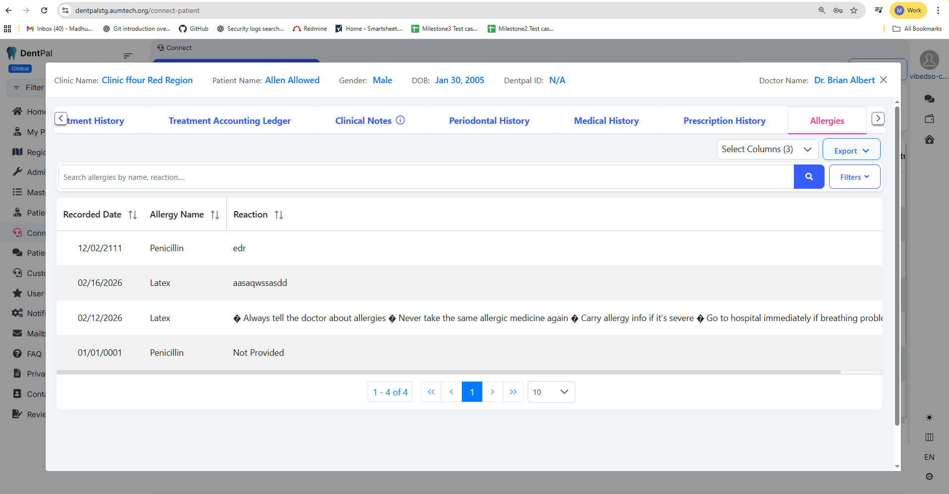 Logged in as Company Admin → Navigate to Connect module → Open Allergies (and other related screens).