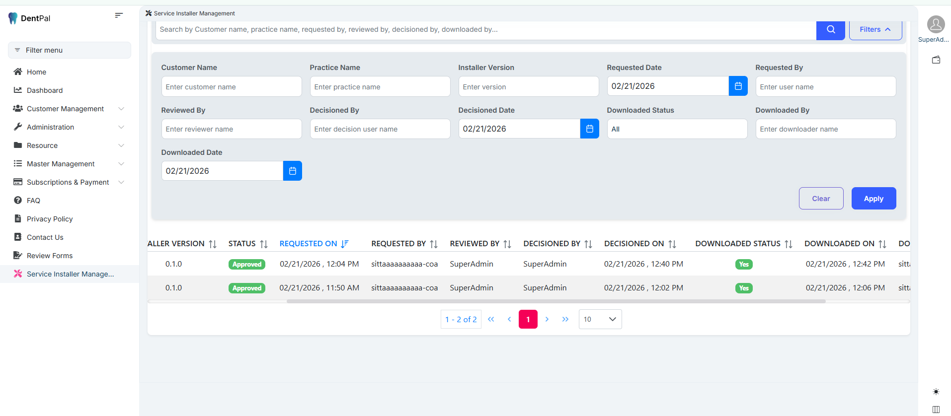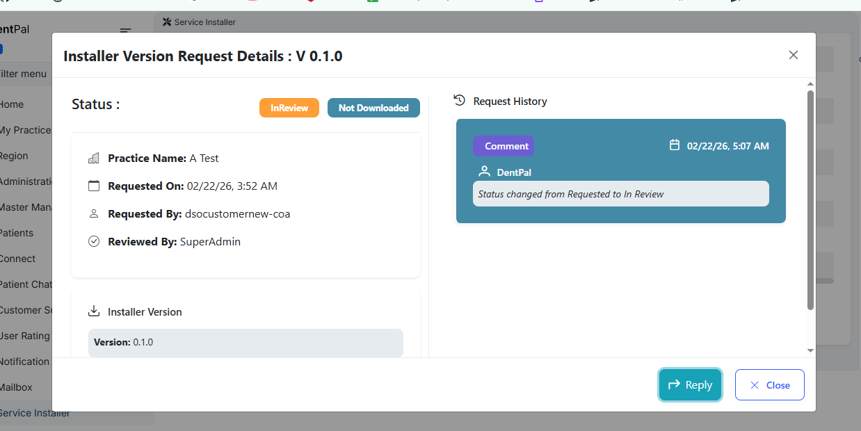 Logged in as Company Admin → Navigate to Service Installer → Open My Requests.