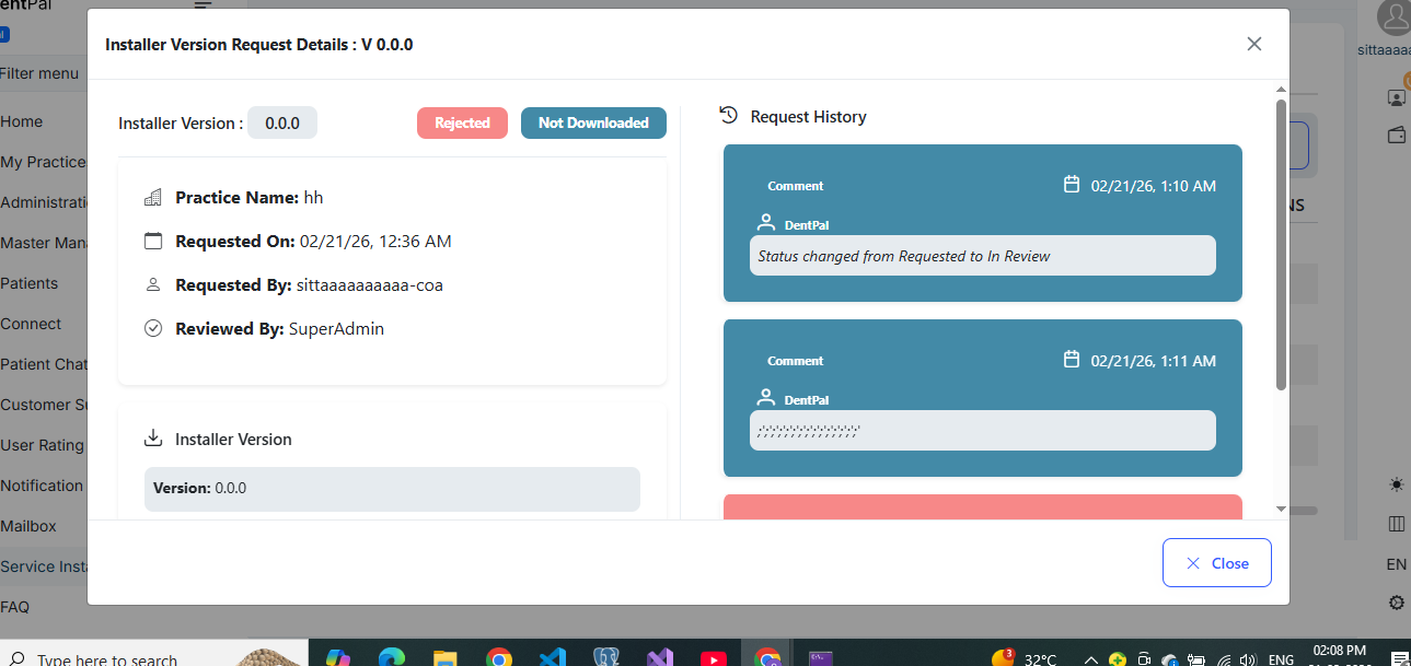 Fixed: Installer version is displayed twice (second installer version shown beside “Requested”).