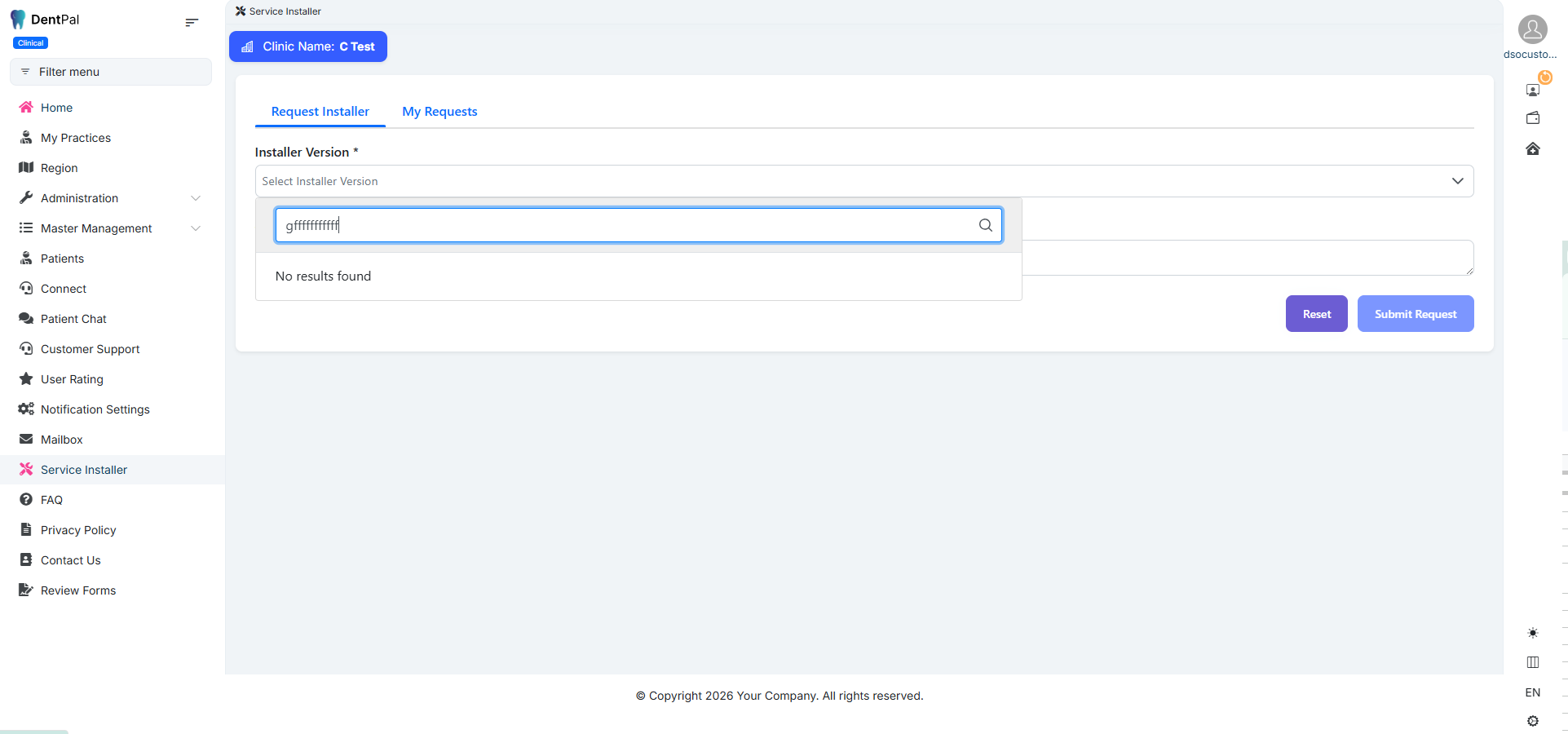 C1.16>> Reset Button Not Working in Request Installer