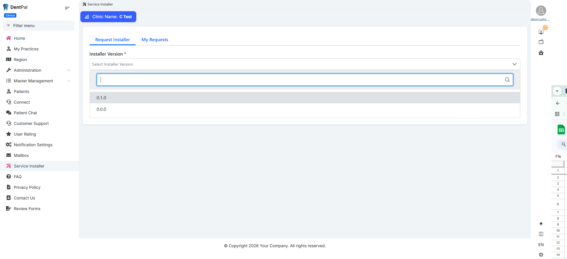Logged in as Company Admin → Navigate to Service Installer → Click on Request Installer.