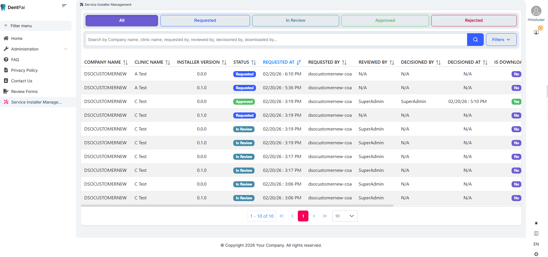 C1.16>> Service Installer Management Menu Visible for Newly Created User (Super Admin Created User)