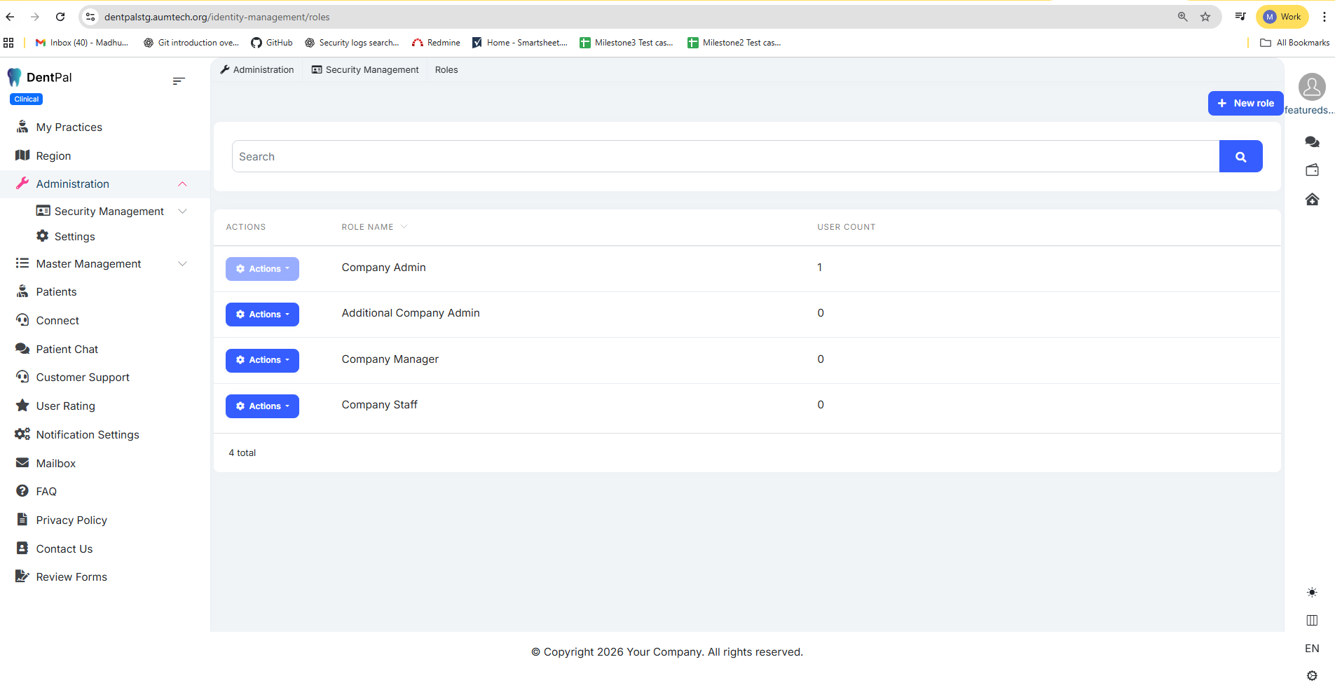 3. Login As Company Admin user (Clinical Provider) , Removed permissions: