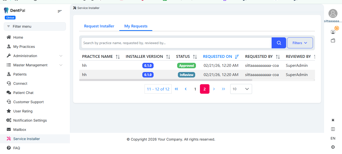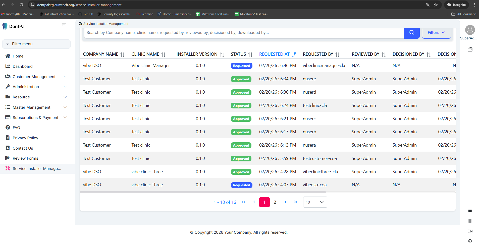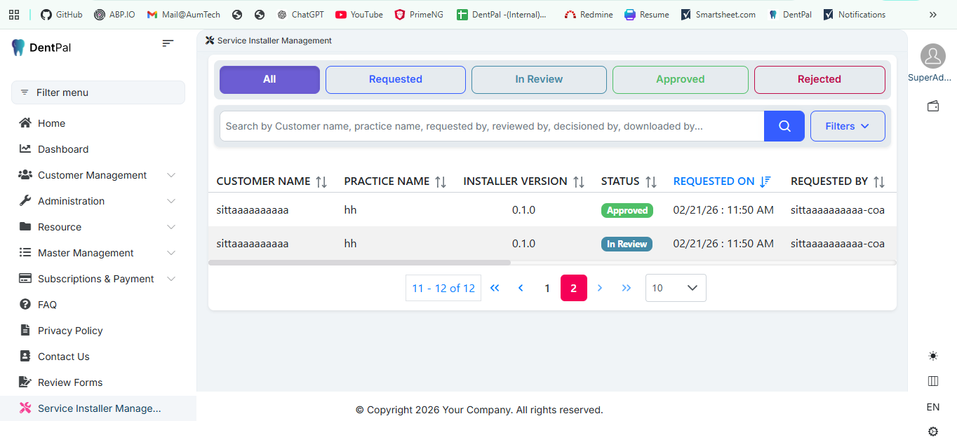 Logged in as Super Admin → Navigate to Service Installer Management.