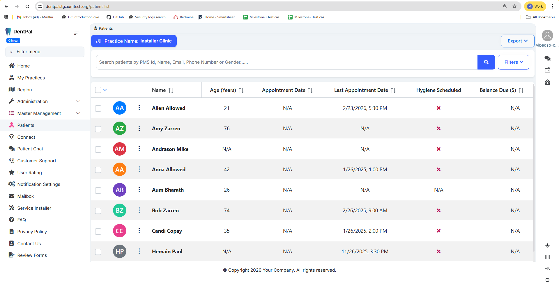 Logged in as Company Admin → Navigate to Patient Module.